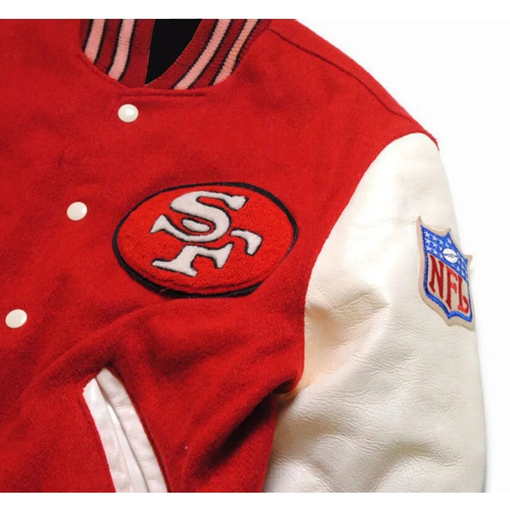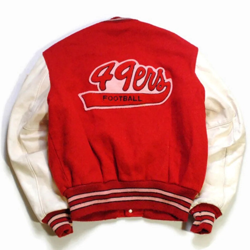 Classic 49ers SF Super Bowl Letterman Jacket celebrating San Francisco football team pride.