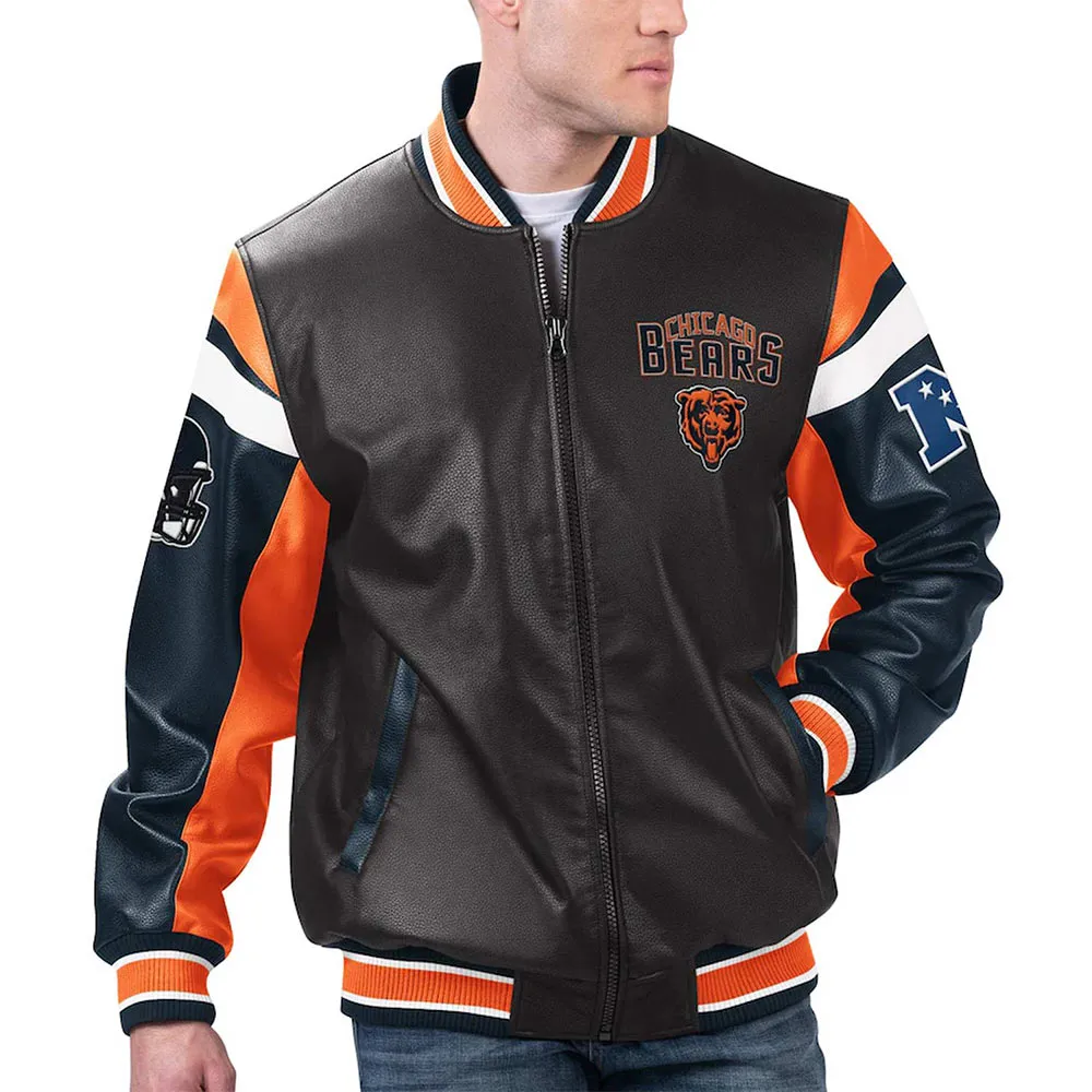 Show your Chicago Bears pride with the Chicago Bears Full-Zip Varsity Black Leather Jacket. Combining timeless style, sporty appeal, and modern comfort, this jacket is the perfect way to represent your team, whether you’re cheering from the stands, hitting the town, or just enjoying casual outings. Designed for both men and women, this high-quality faux leather jacket combines fashion with functionality, making it a must-have for any true Bears fan.