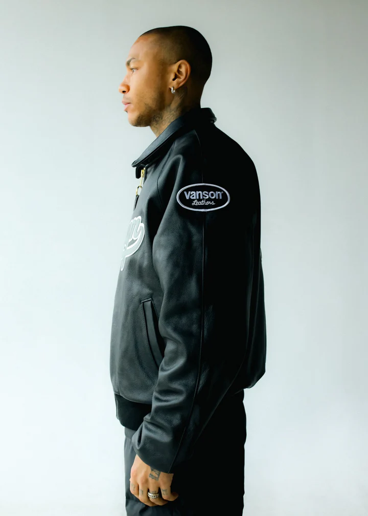 Crafted from Vanson’s renowned competition-grade leather, this Fly Geeniuz x Vanson Jacket is built for a lifetime of wear. It features the classic, clean lines of a bomber silhouette, upgraded with distinct graphic language. Details like co-branded patches and heavy-duty hardware underscore its exclusive status. This piece is a testament to quality, designed for those who appreciate the fusion of hip-hop culture and authentic American craftsmanship, making it a premier collaboration jacket.