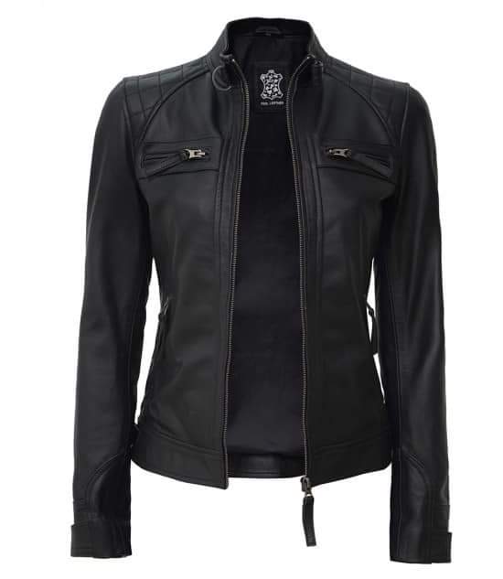 Women Tall Black Quilted Cafe Racer Leather Jacket