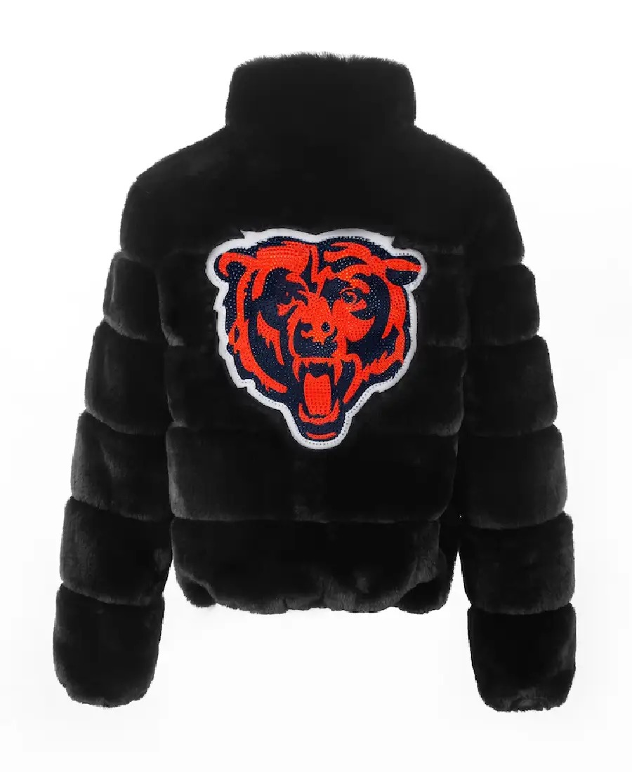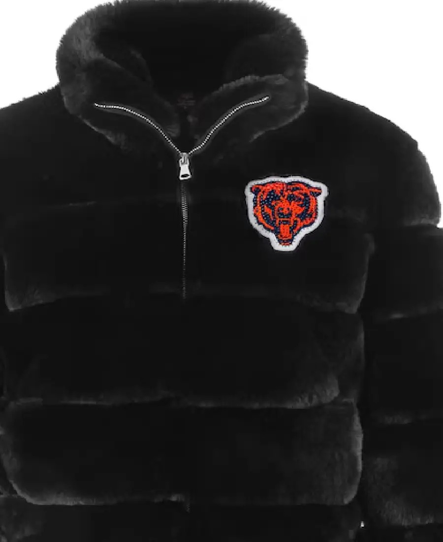 The Women’s Cuce Black Chicago Bears Faux Fur Full-Zip Bomber Jacket is the perfect blend of bold NFL fashion and everyday comfort. Designed for true fans, this jacket delivers standout Chicago Bears style while keeping you warm during colder game days.